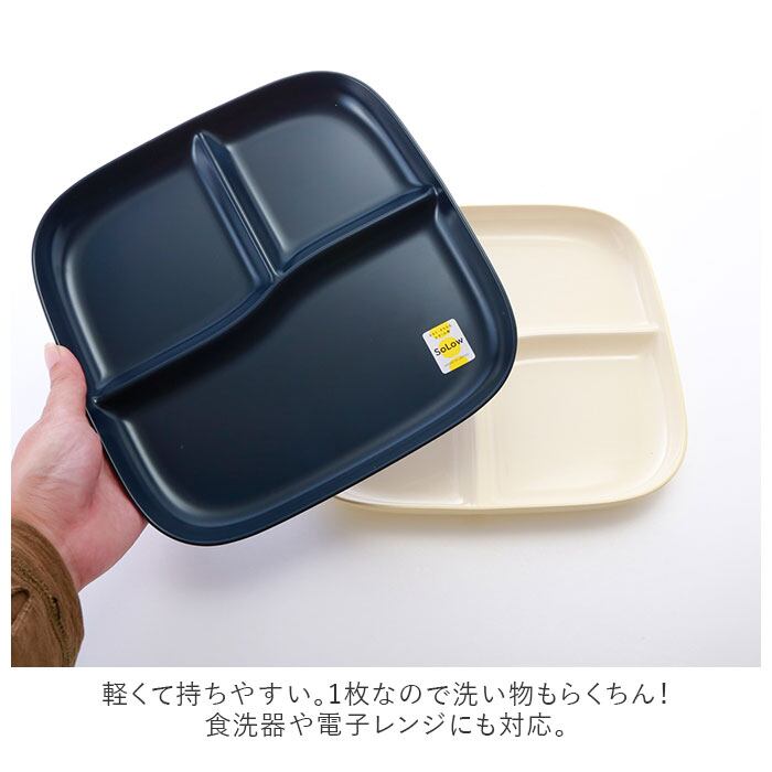 ・おうちカフェ気分が味わえる仕切りプレート♪シンプルなラウンドスクエアデザインでランチでもディナーでも。