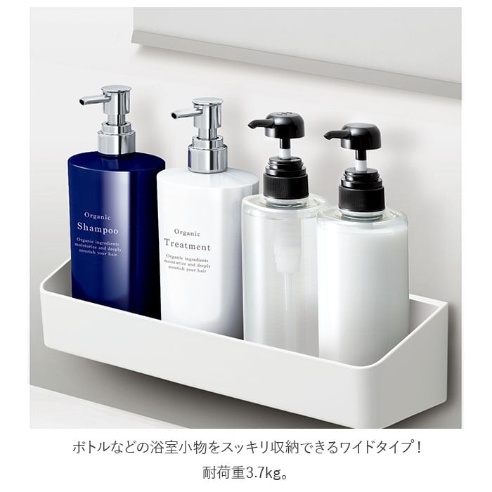 ・ボトルなどの浴室小物をスッキリ収納できるワイドタイプ!耐荷重3.7kg。