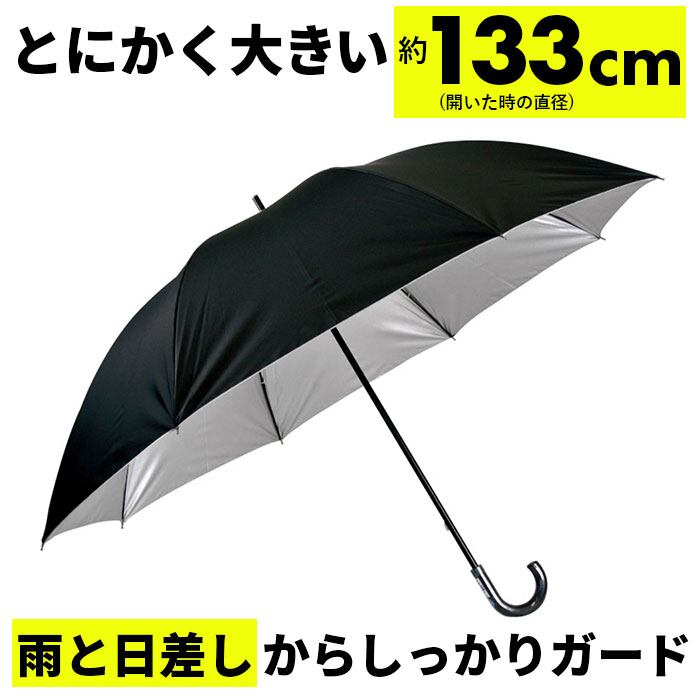 ・傘の下に大人2人が入っても雨に濡れにくい、親骨の長さ約80cm、直径約133cmの超ビッグサイズ。
