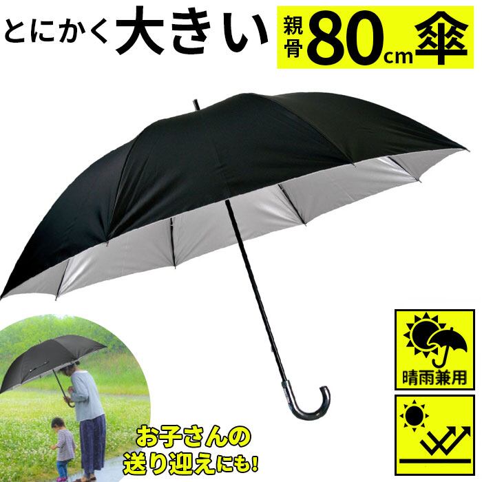 大きい 傘 80 通販 メンズ 晴雨兼用傘 ブランド アテイン おしゃれ 長傘 日傘 超大判 80cm 耐風傘 強風 グラスファイバー骨 手開き ブラック 黒 遮光 uvカット 99% 紳士傘 かさ