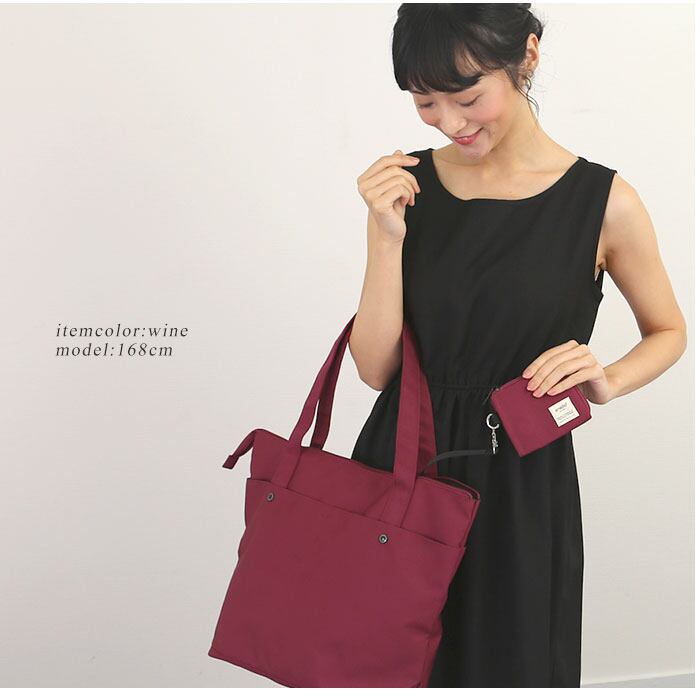 ・コインケースやパスケースとしても使える付け外し可能な付属ミニポーチは、約25cmのストラップでトートとつなげられ、なくす心配がなく安心。