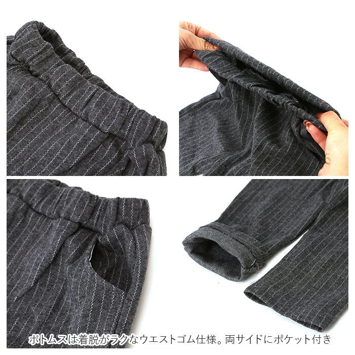 ・ボトムスは着脱がラクなウエストゴム仕様。両サイドにポケット付き。