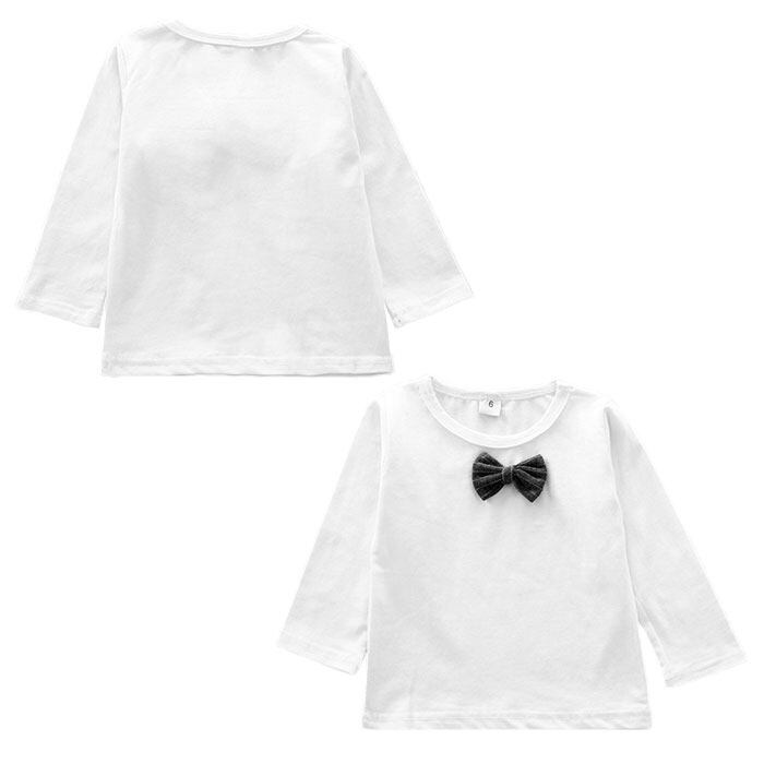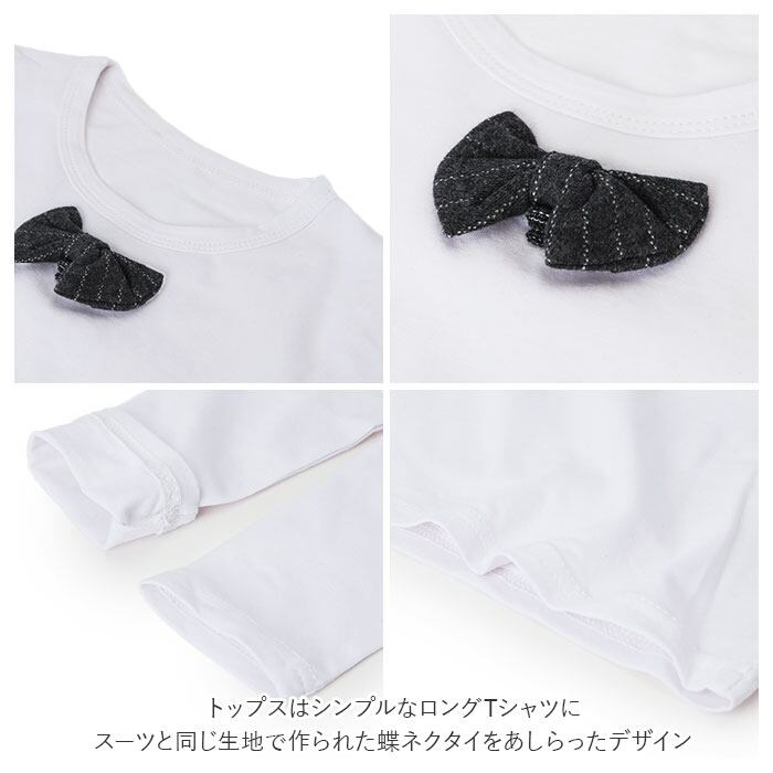 ・トップスはシンプルなロングTシャツにスーツと同じ生地で作られた蝶ネクタイをあしらったデザイン。