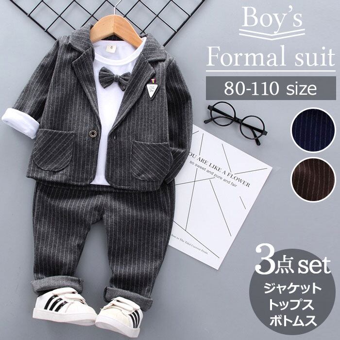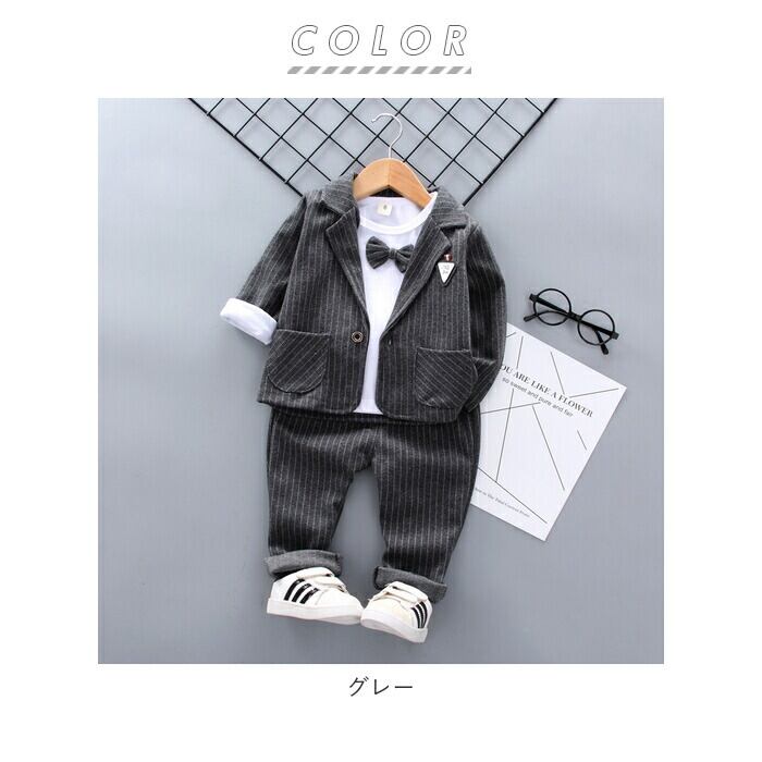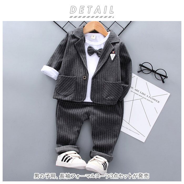 ・男の子用、長袖フォーマルスーツ3点セットが発売。