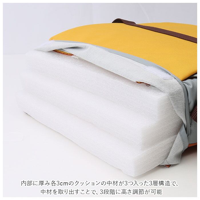 ・内部に厚み各3cmのクッションの中材が3つ入った3層構造で、中材を取り出すことで、3段階に高さ調節が可能。お子さまの成長に合わせて長く使える嬉しい工夫。