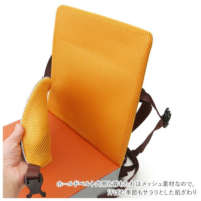 ・ホールドベルト内側と背もたれはメッシュ素材なので、汗ばむ季節もサラリとした肌ざわり。