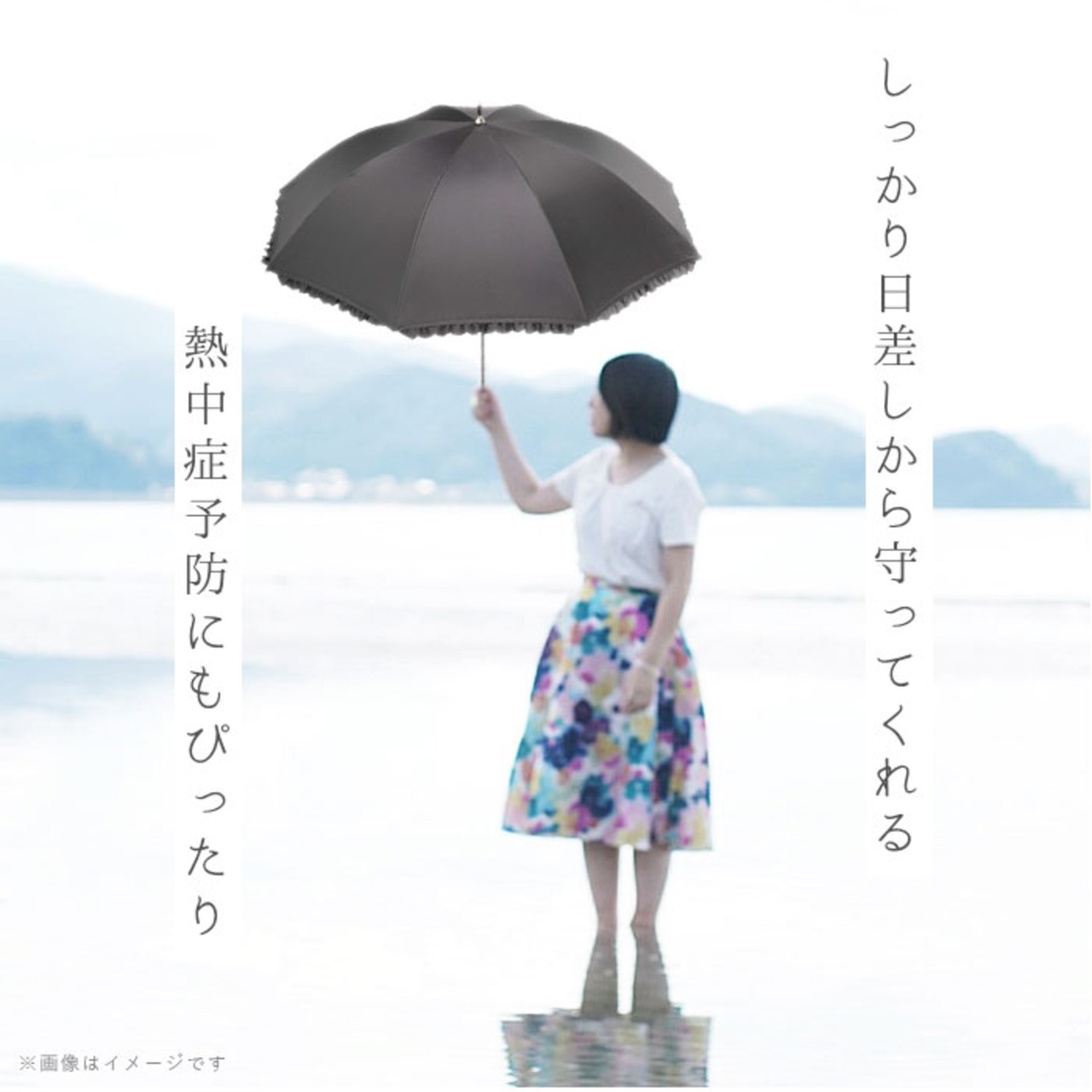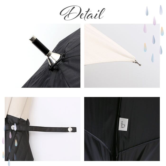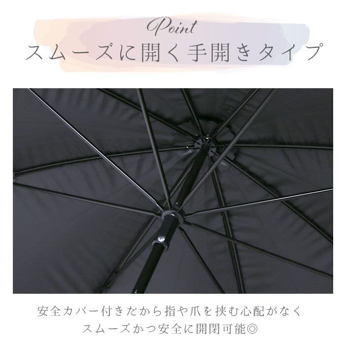 ・傘生地の内側にはブラックコーティングを施してありUVカット率99.9%以上、遮光率99.9%以上でバッチリ紫外線対策◎