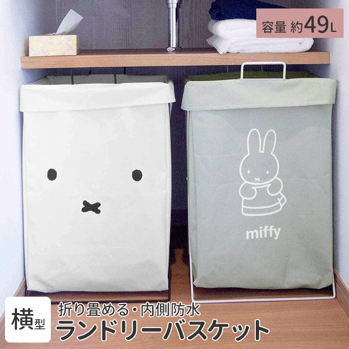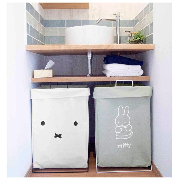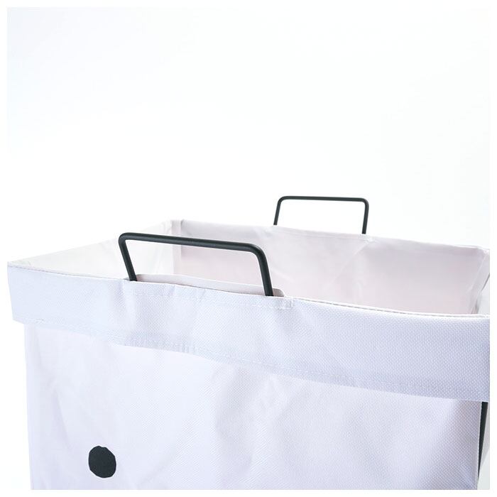 ・パカっと口が開いた状態なので洗濯物の出し入れがしやすいランドリーバスケット横型。内側防水加工付き。