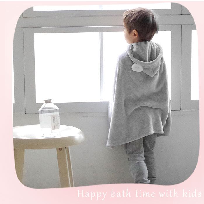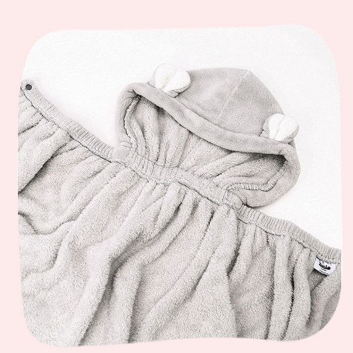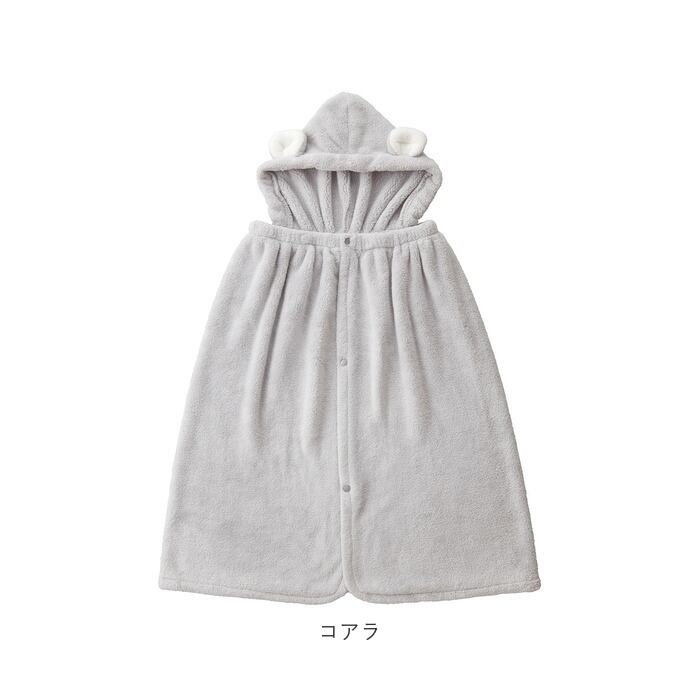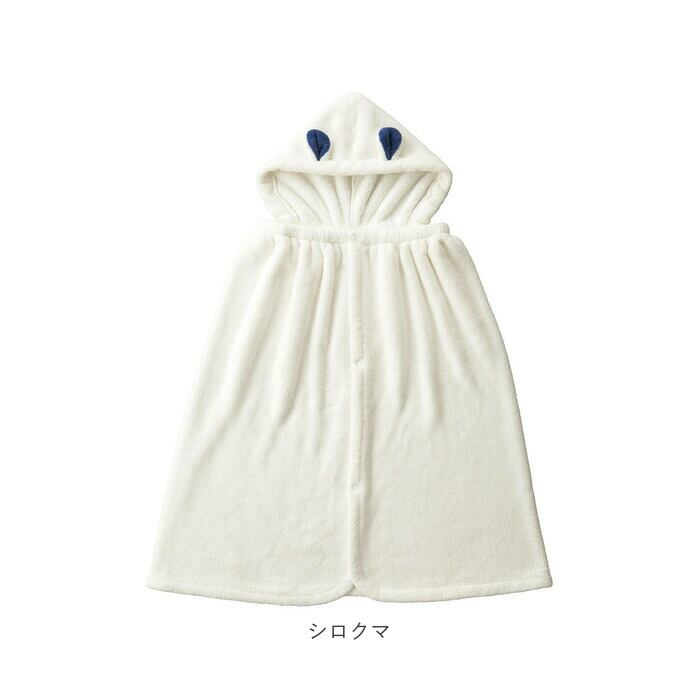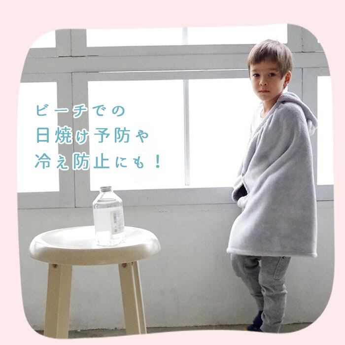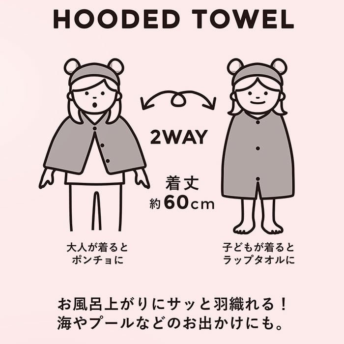 ・着丈約60cmの絶妙なサイズ感で、大人が着ればポンチョサイズに。お子さまが着れば、前合わせのボタンと首回りのゴムで身体をふんわり覆ってくれる可愛いラップタオルに!