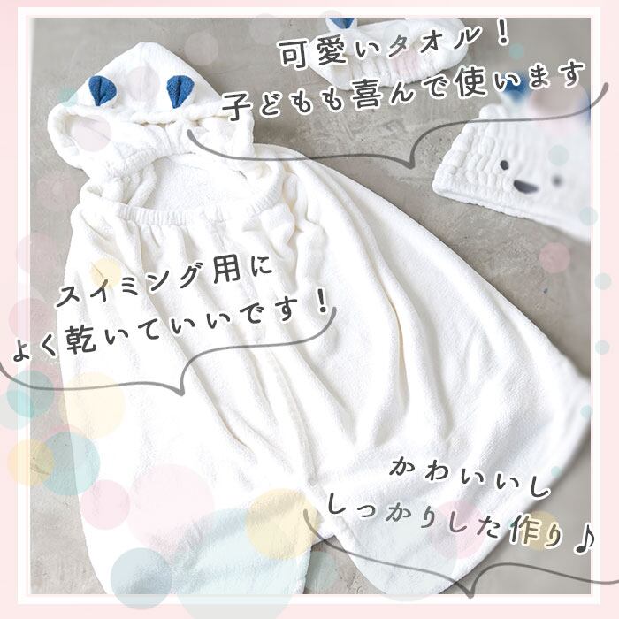 ・ふわふわマイクロファイバーが水分をサッと吸水!ポンチョとタップタオル、2WAYで使えるフード付きタオル。