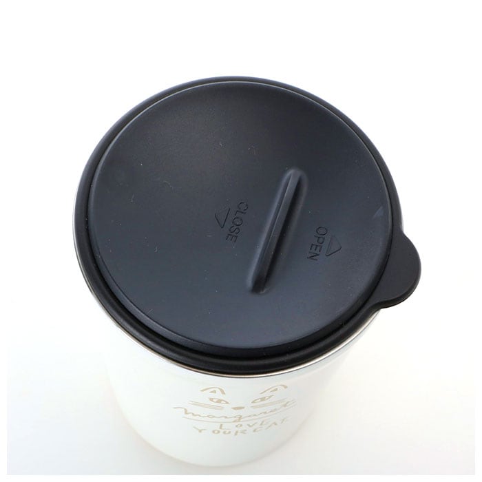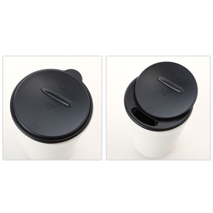 ・片手でスライドができるフタ付きなので、デスクの上でタンブラーを倒しても飲み物のこぼれ防止になる。