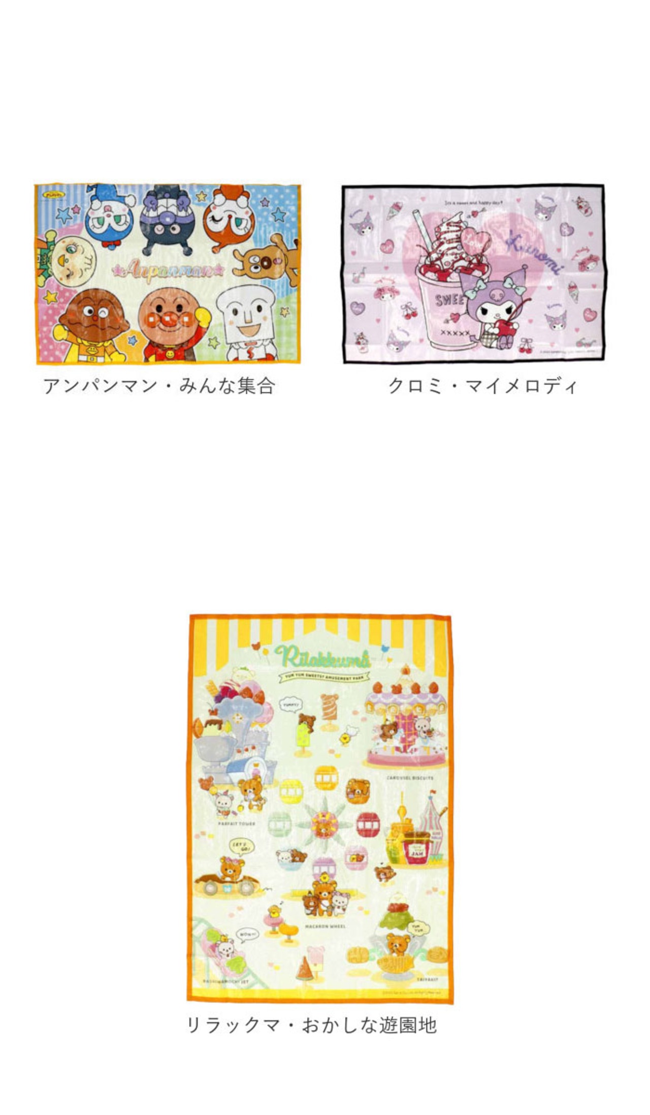 ・お子さまに人気のキャラクターが大集合!可愛いレジャーシート(Sサイズ)が発売。
