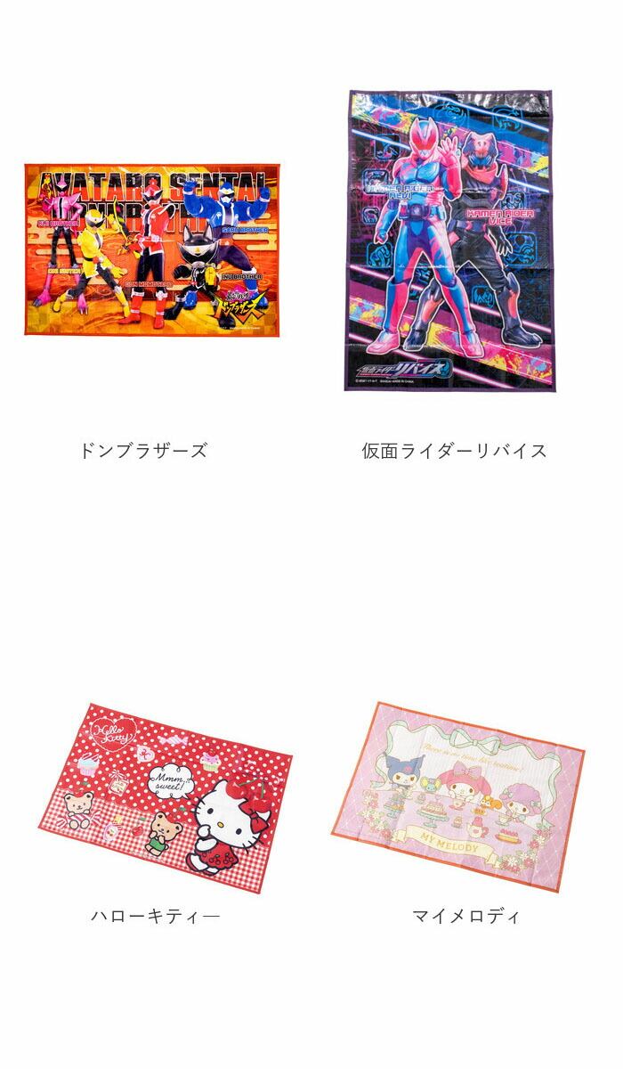 ・約60cm×90cmの1人用サイズ。幼稚園の遠足などにはもちろん、ちょっとした荷物置きなど、様々なシーンで大活躍★(※種類により、縦向きと横向きデザインに分かれます。)