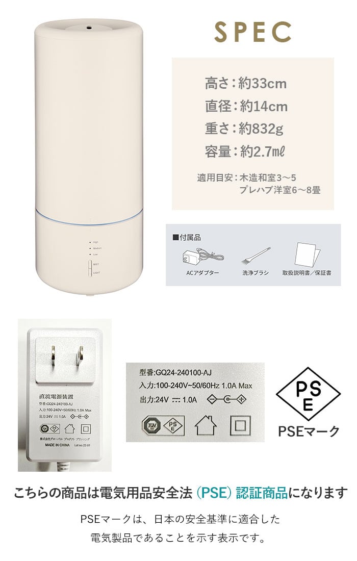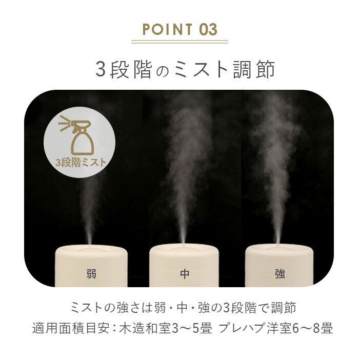 ・ミストの強さは好みで選べる3段階(強・中・弱)。