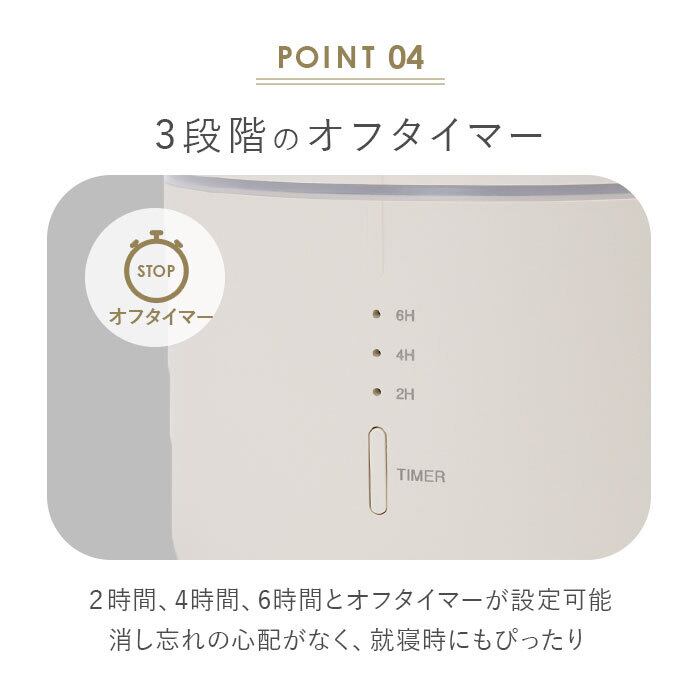 ・オフタイマー付き(2H・4H・6H)で、消し忘れの心配もない◎