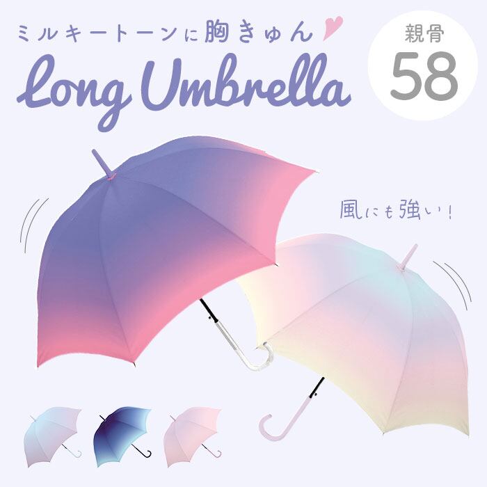 晴雨兼用傘 長傘 58cm 通販 レインボー グラデーション 雨傘 日傘 傘 カサ かさ 晴雨兼用 紫外線カット uvカット ミルキートーン アンブレラ 大きめ 遮光 大人 子供 レディース ジュニア 雨具 女の子 女性 おしゃれ