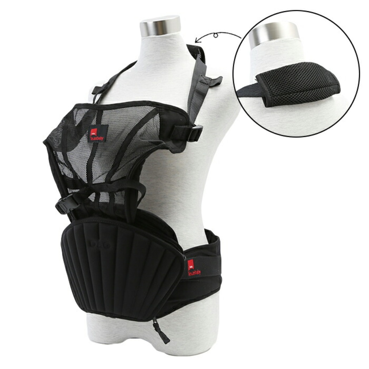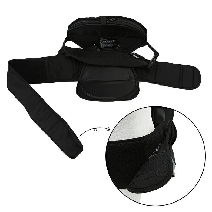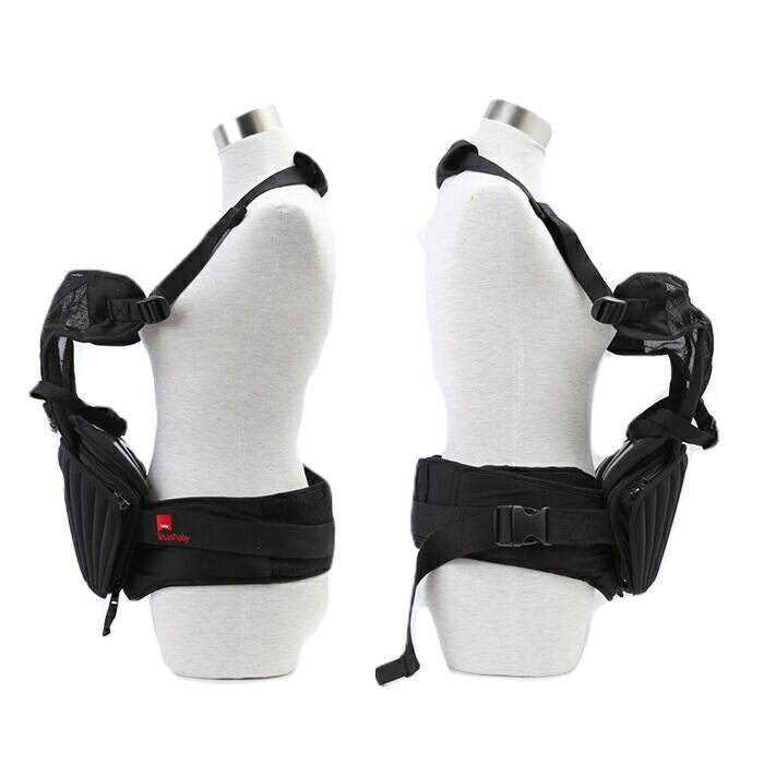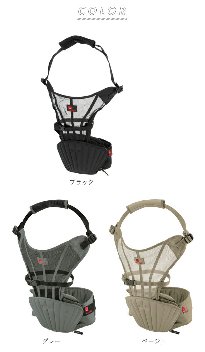 ・ヒップシートをより安定して装着できるウエストベルト、下腹部・骨盤サポートパッドを装備しており、パパママの負担も軽減!