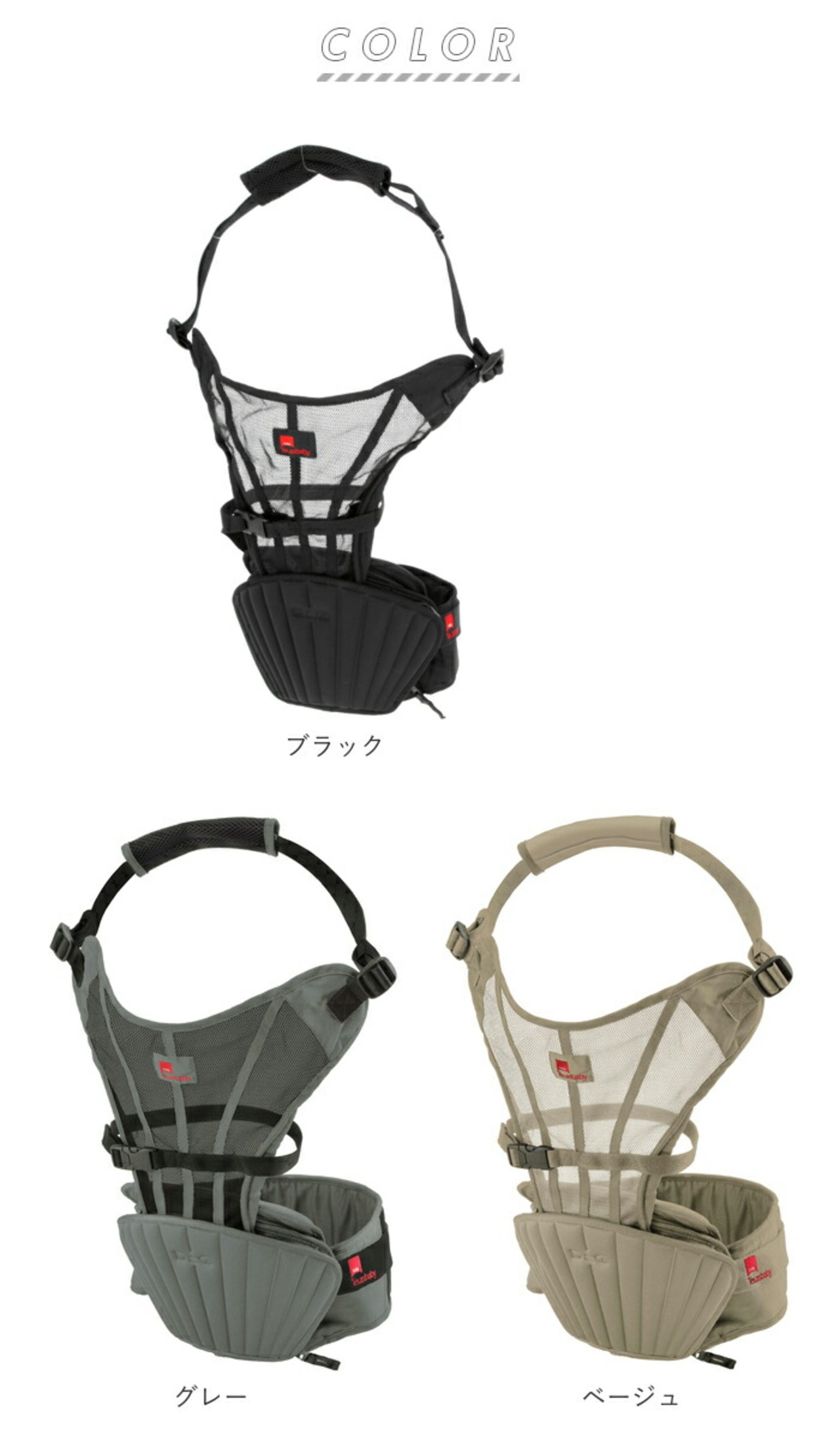 ・タテ抱っこ(対面、前向き)・腰抱っこ(対面、前向き)に対応!