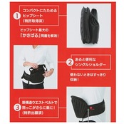 ・腰に巻くと平らなクッション部分が作れるので、赤ちゃんを抱っこする時にファスナーを組んで使うことができる。