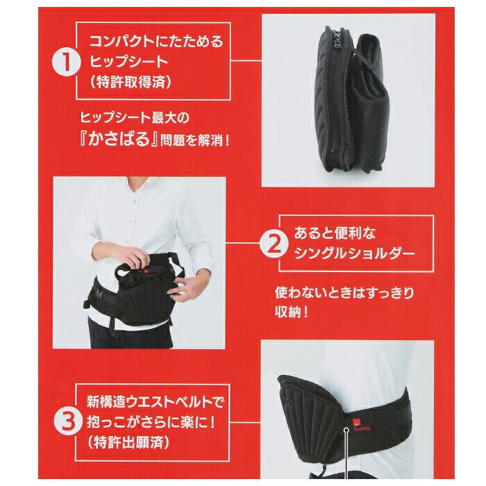 ・赤ちゃんを抱っこした時の安定感が出る座面の背もたれと、肩に掛けられるシングルショルダー付き。