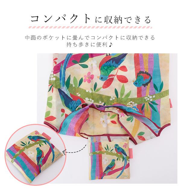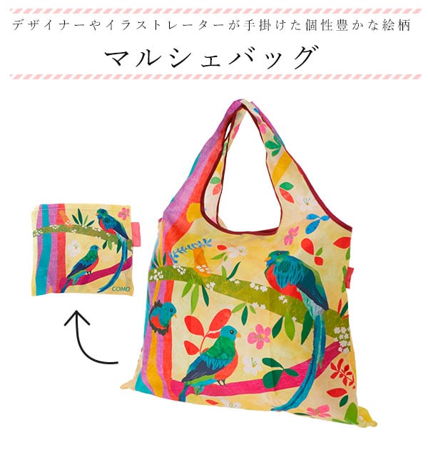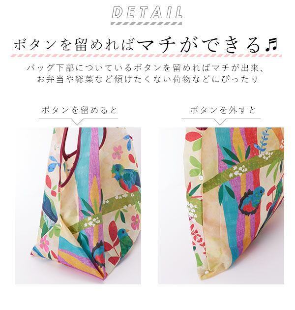 使わない時にはコンパクトに折りたたんで、カバンからさっと取り出せる!携帯に便利なショッピングバッグ。国内のデザイナーやイラストレーターが手掛けた個性豊かな絵柄が、毎日のお買い物を楽しくしてくれます!四角く形を整えて、サイドのスナップボタンを留めれば、マチ付きの大容量バッグになり、20kgの荷重にも対応可能。