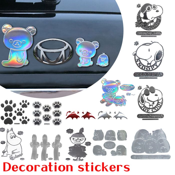 ・スヌーピーなどの人気キャラクターのデザインと、メタリックな輝きで、愛車や小物を自分好みにデコレーション!
