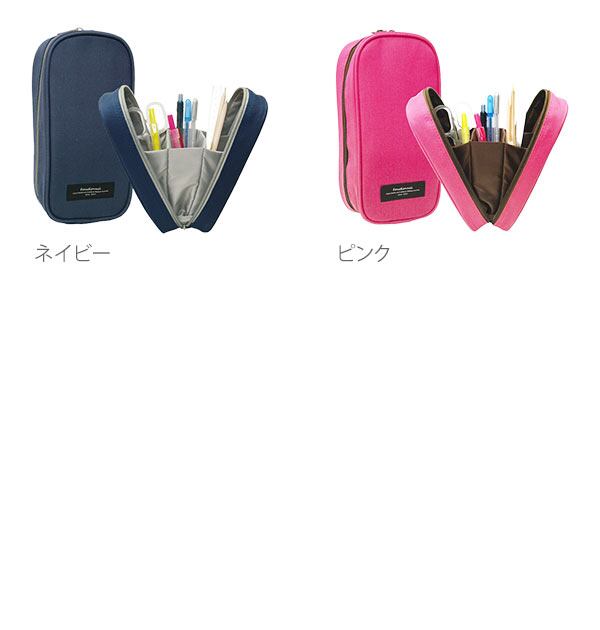 ファスナーを開けると「パッ」と開きます。3つのポケットで仕切りごとに色々分けて入れられるので、使いやすく大容量のペンケースです。