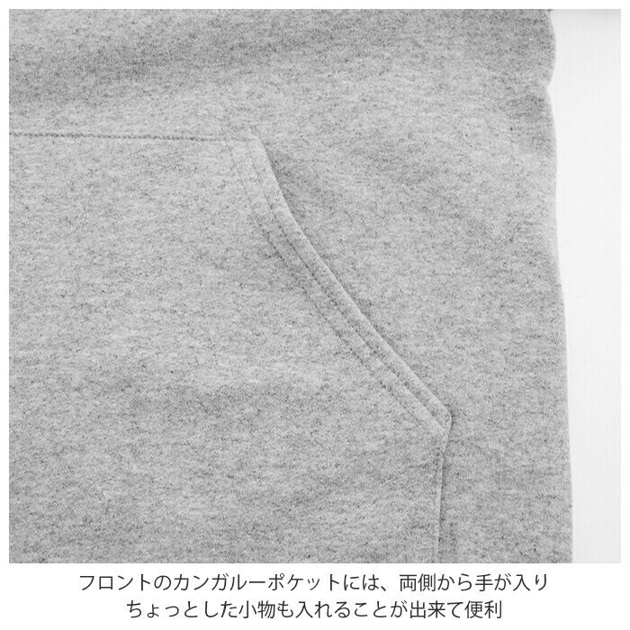 ・フロントのカンガルーポケットには、両側から手が入り、ちょっとした小物も入れることが出来て便利。
