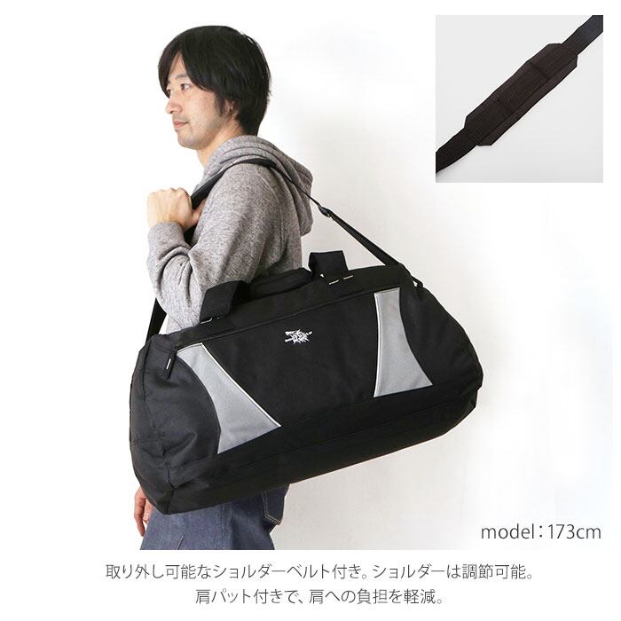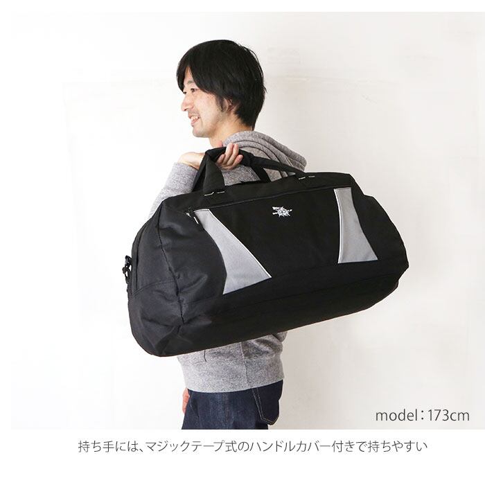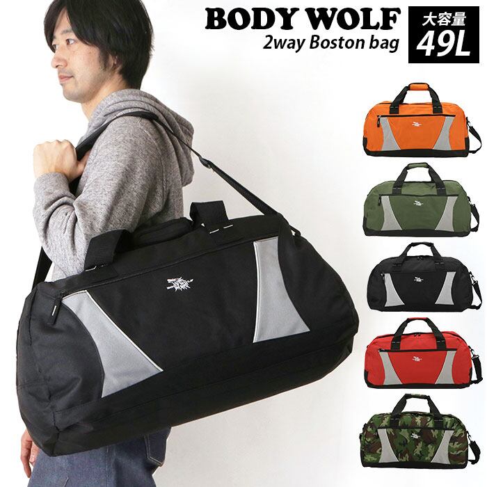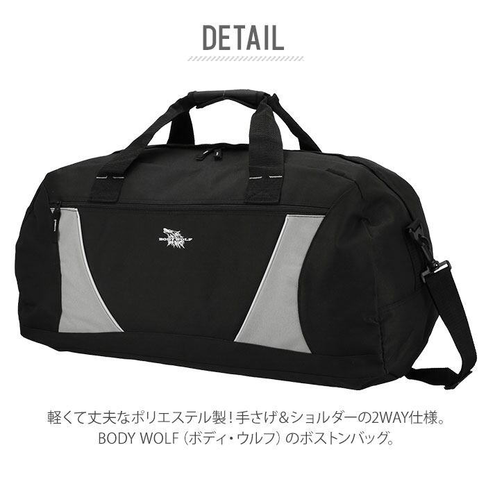 ・軽くて丈夫なポリエステル製!手さげ&ショルダーの2WAY仕様。BODY WOLF(ボディ・ウルフ)のボストンバッグ。