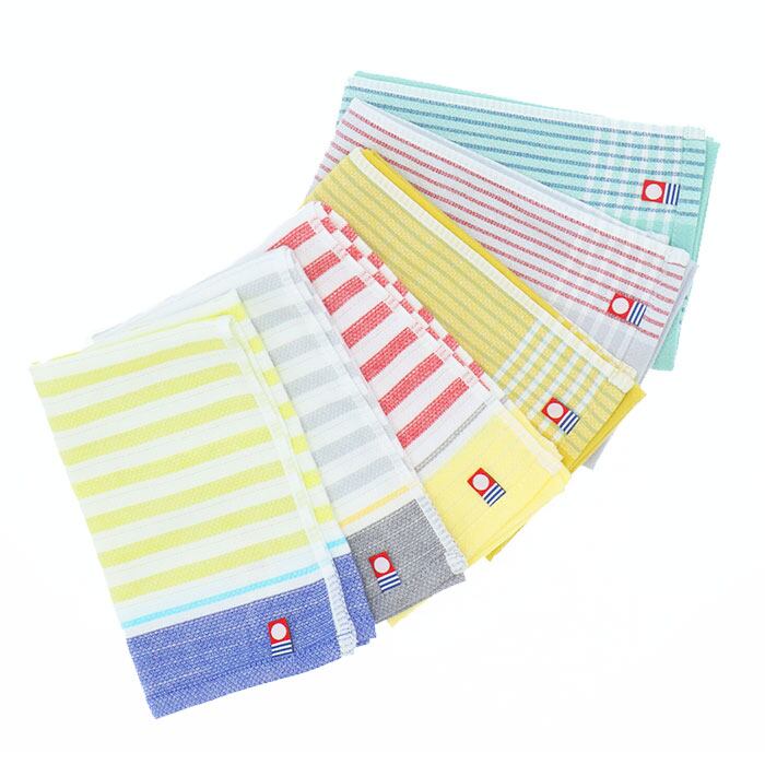 ・気持ち華やぐ色使いが、キッチンやダイニングをセンスよく彩るデザインも魅力。布巾としてだけでなく、ランチョンマットや、バスケットや食器に被せてほどよい目隠しにも大活躍!