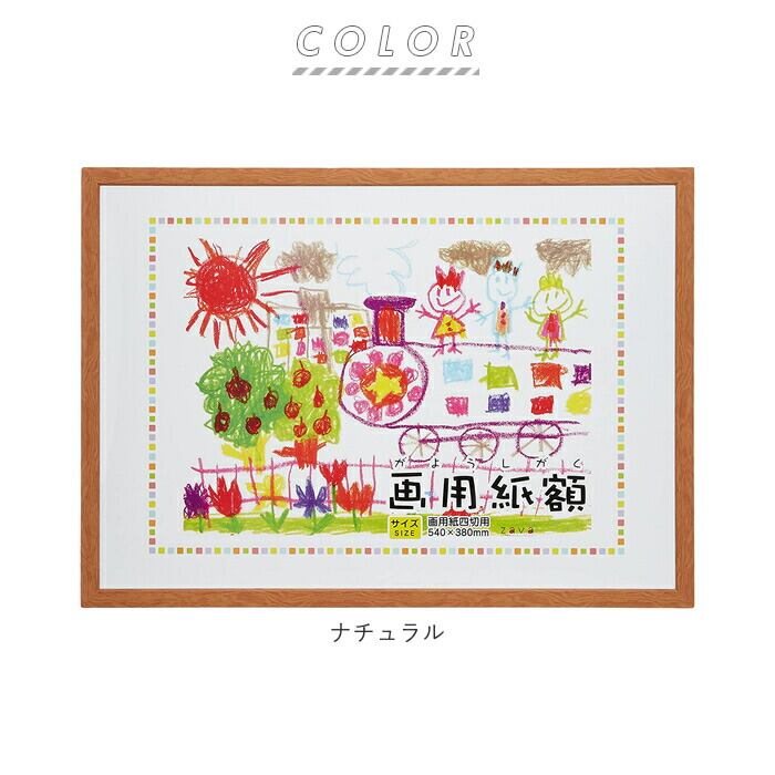 ・お子さんが描いた世界で一枚だけの絵をお部屋に飾れるシンプルな木目調フレーム!