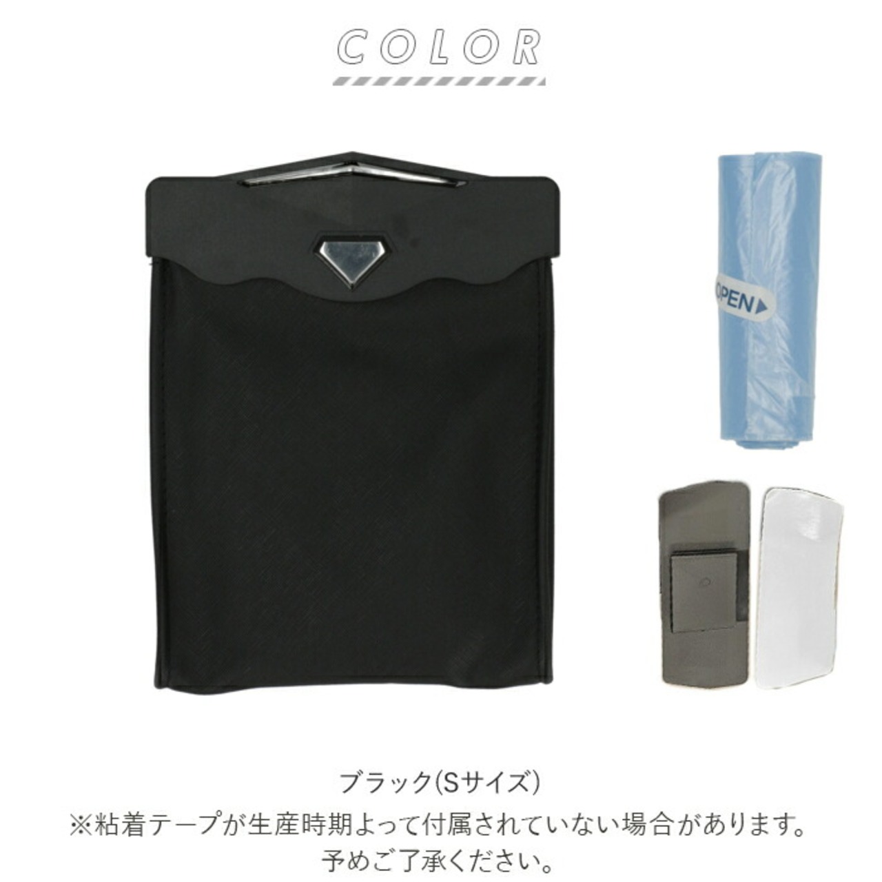・車内のインテリアや、取り付ける場所に合わせて選べる2サイズをラインナップ。(※Sサイズは、付属の固定パーツと両面テープで、コンソールボックス側面などに取り付け可能)