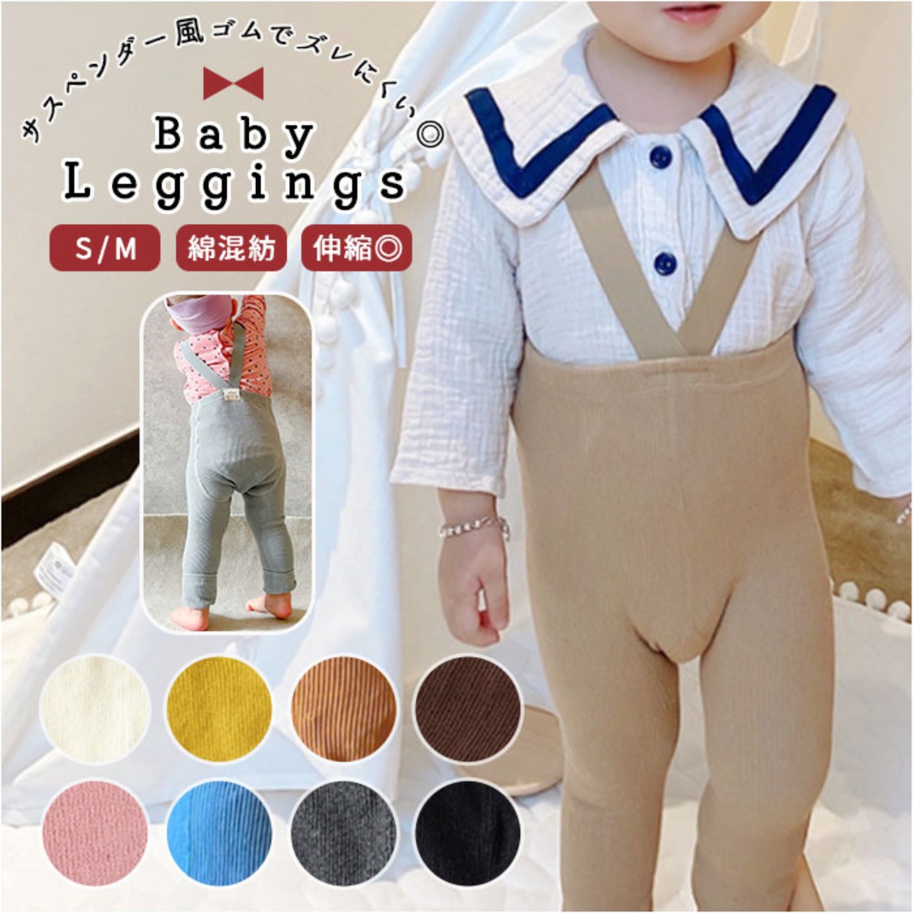 ・サスペンダーのようなゴムストラップ付き!サロペット風のレギンス。