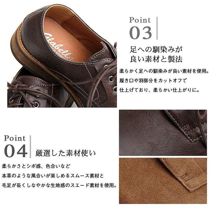・つま先にはアンティーク加工を施し、履きこんだような風合いを楽しめる。