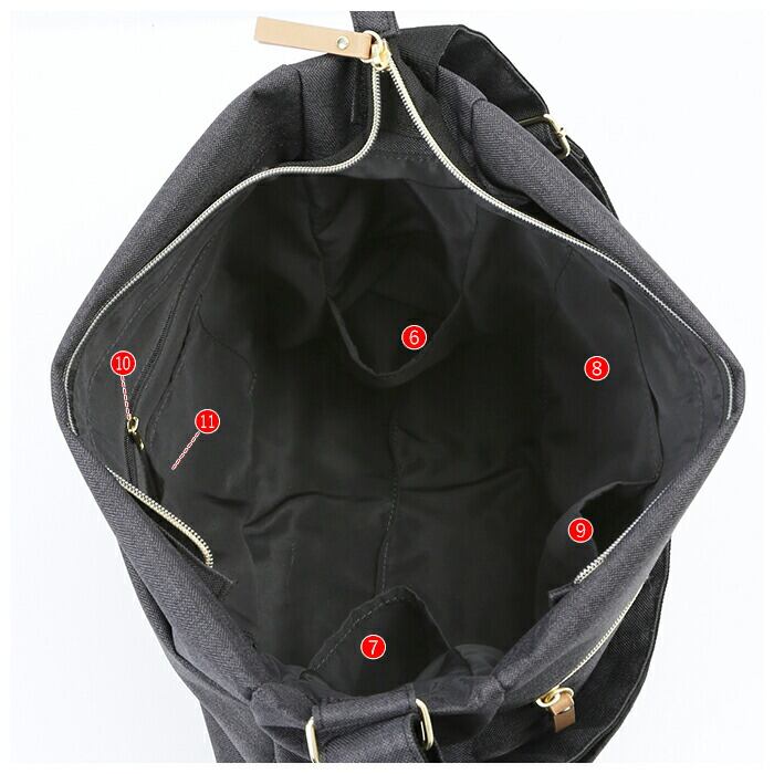 ・収納ポケットが11個と多いので小物を小分けに入れられてバッグ内が整理整頓できてスッキリ。