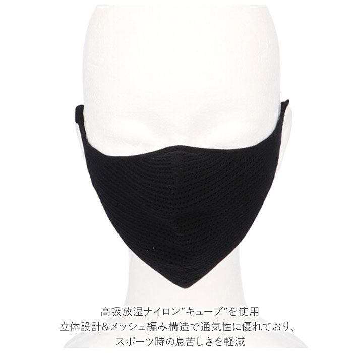 ・高吸放湿ナイロン”キュープ”を使用。立体設計&メッシュ編み構造で通気性に優れており、スポーツ時の息苦しさを軽減。