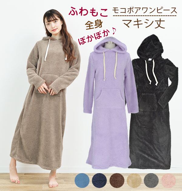 マキシワンピース 通販 ルームウエア 秋冬 長袖 裏起毛 ボア もこもこ ワンピース マキシ丈 レディース かわいい あったか 暖かい マキシ丈ワンピース 部屋着 ふわふわ ママ マタニティ 妊婦 ロングワンピース フード付き 軽い 軽量