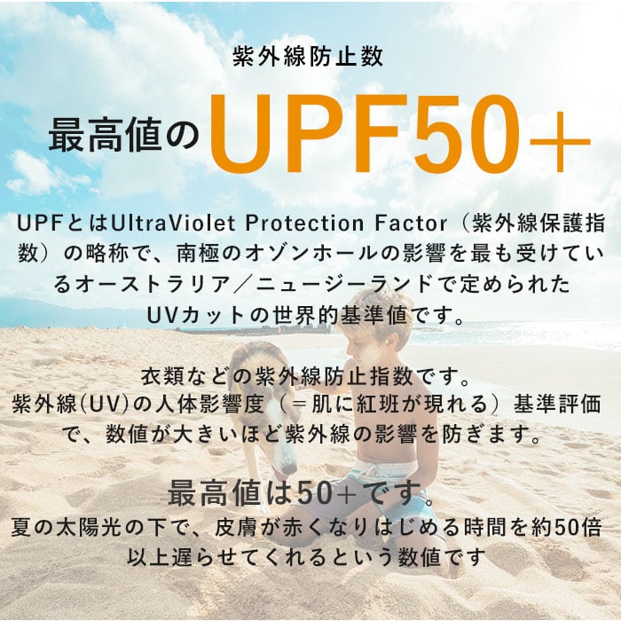 ・紫外線防止指数は最高値のUPF50+!(※オーストラリア・ニュージーランド基準での数値です。)
