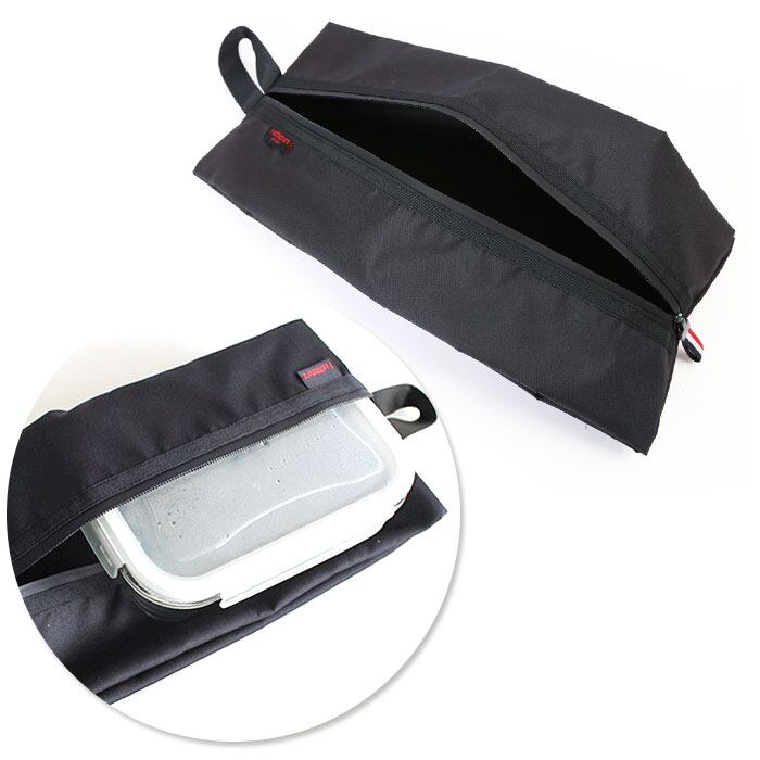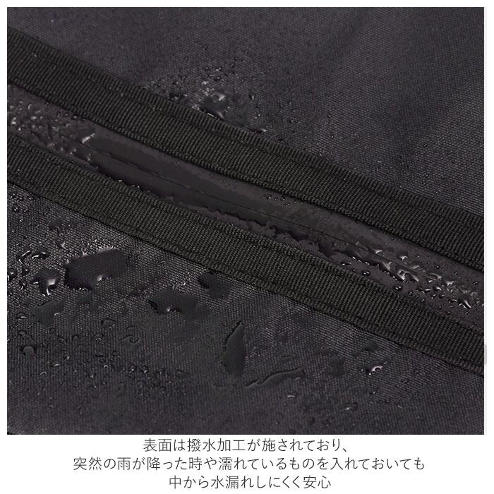 ・表面は撥水加工が施されており、突然の雨が降った時や濡れているものを入れておいても中から水漏れしにくく安心。