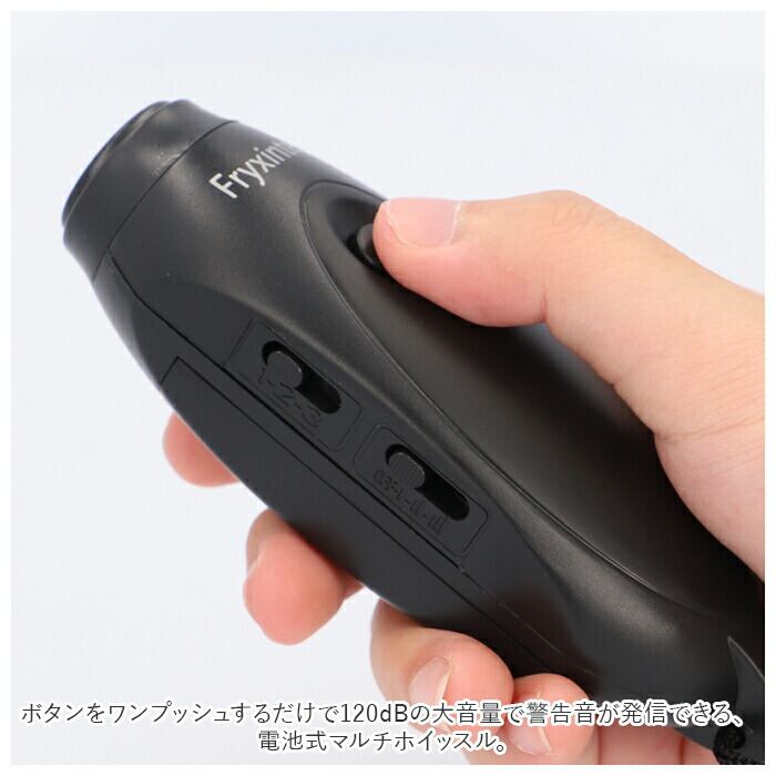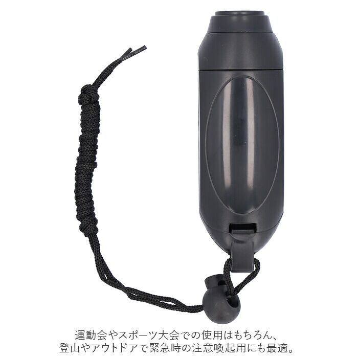 ・ボタンをワンプッシュするだけで120dBの大音量で警告音が発信できる、電池式マルチホイッスル。