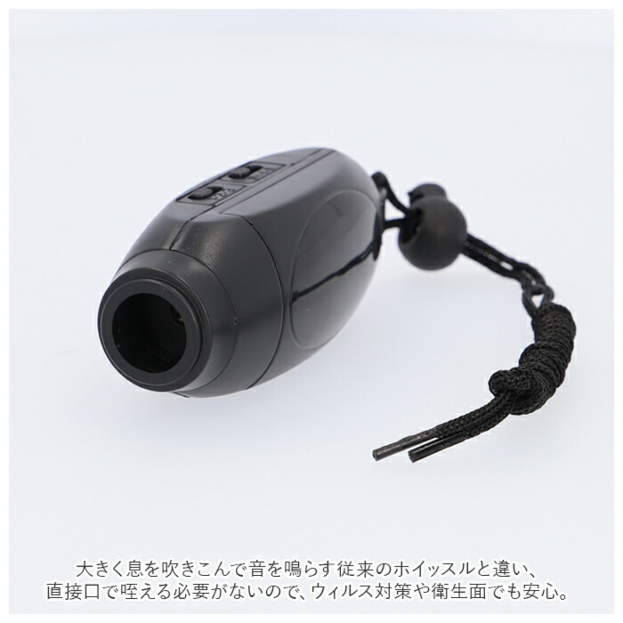 ・大きく息を吹きこんで音を鳴らす従来のホイッスルと違い、直接口で咥える必要がないので、ウィルス対策や衛生面でも安心。
