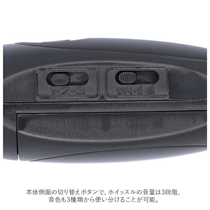 ・本体側面の切り替えボタンで、ホイッスルの音量は3段階、音色も3種類から使い分けることが可能。