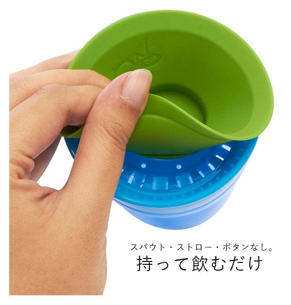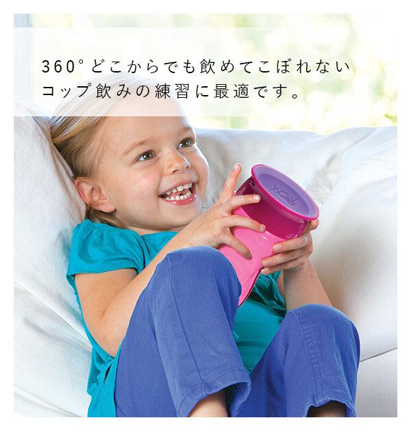 フタをつけたまま360℃どこからでも飲める!こぼれにくい不思議なキッズ用カップ「WOW CUP キッズ トライタン」です。アメリカ歯科医推奨のスパウトやストローがない特徴的なデザインで、持って飲むだけ!倒しても逆さにしてもこぼれにくく、キッズに持ちやすく優しい形状です。