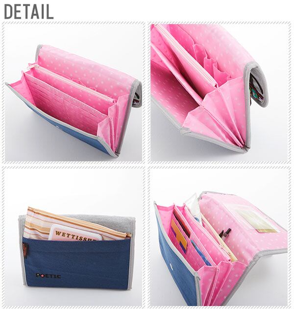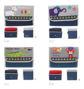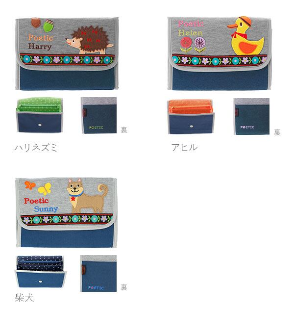 アニマルのアップリケ&刺繍が、優しい風合い。小分けポケットがたくさんあり、小銭などが入れられるファスナーポケットや、背面ポケットも便利です。