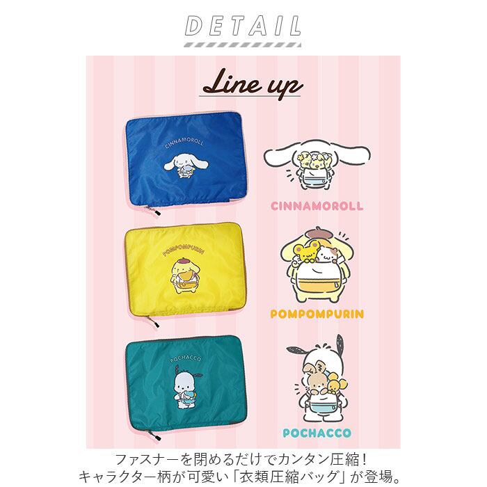 衣類圧縮袋 旅行 通販 圧縮バッグ トラベル 掃除機不要 アスナー ジッパー 圧縮袋 衣類 かわいい キャラクター サンリオ 仕分け 収納 圧縮ポーチ 圧縮バック 旅行用品 旅行小物 収納用品 日用品雑貨 生活雑貨