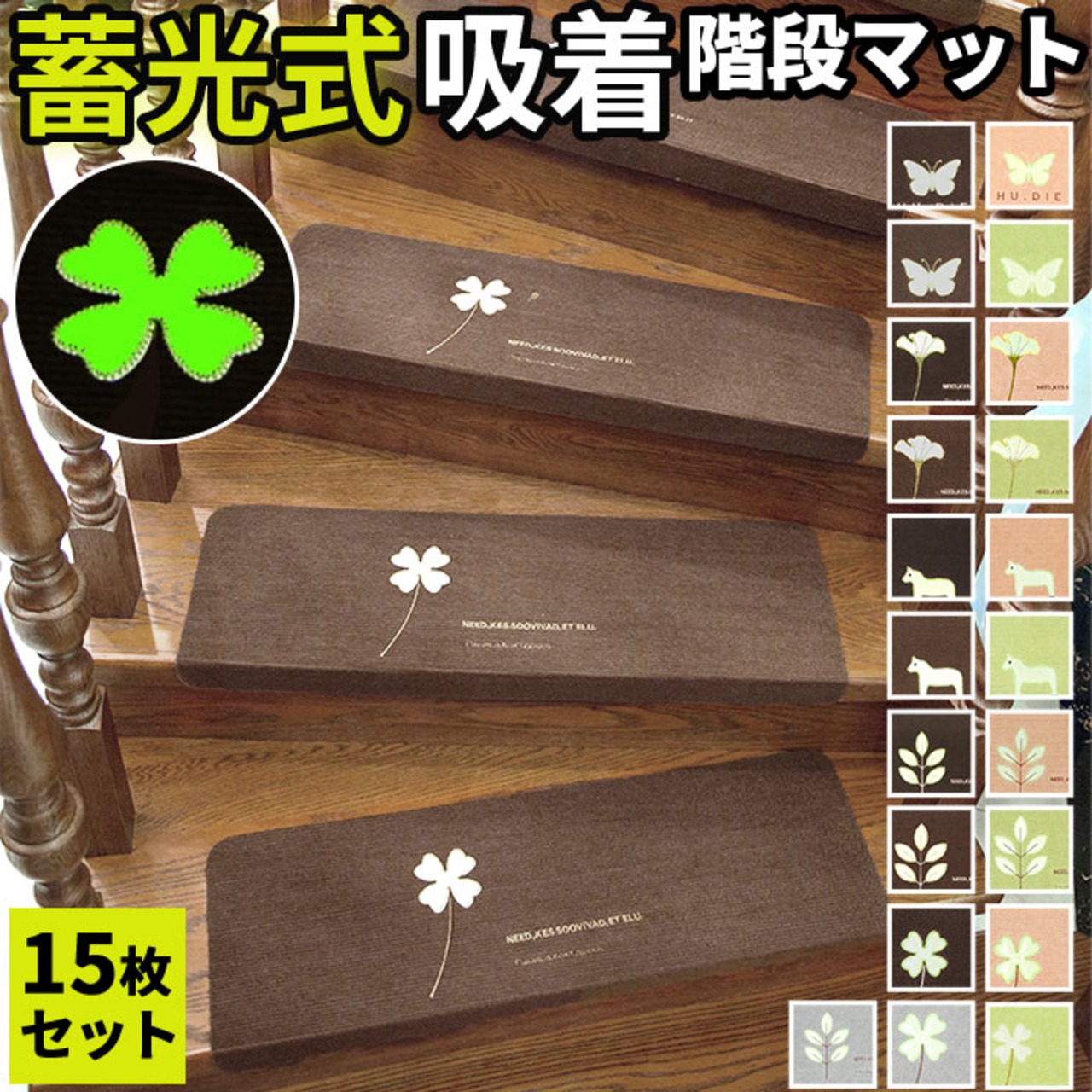 階段マット 15枚入 蓄光式 柄 kpvcstairs01