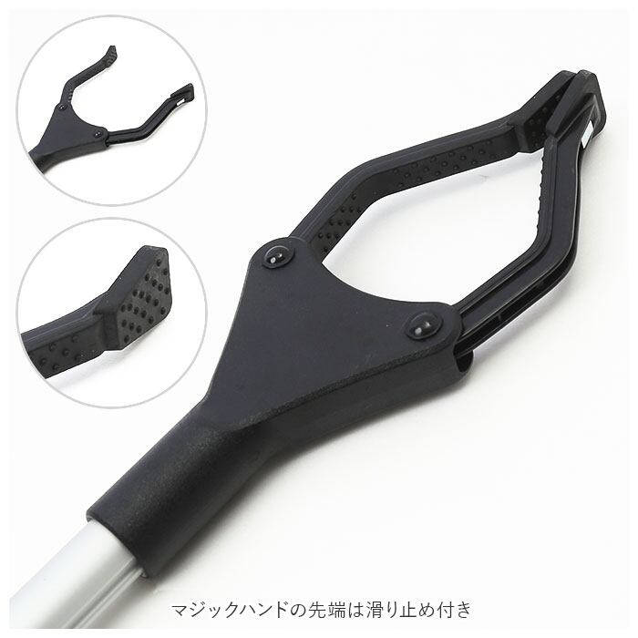 ・腰を折り曲げずに足元の小物が拾えるので、お年を召した方用のお助けハンドにも便利。