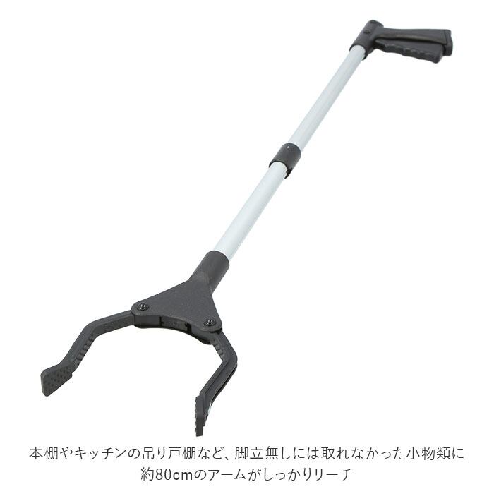 ・本棚やキッチンの吊り戸棚など、脚立無しには取れなかった小物類に約80cmのアームがしっかりリーチ。