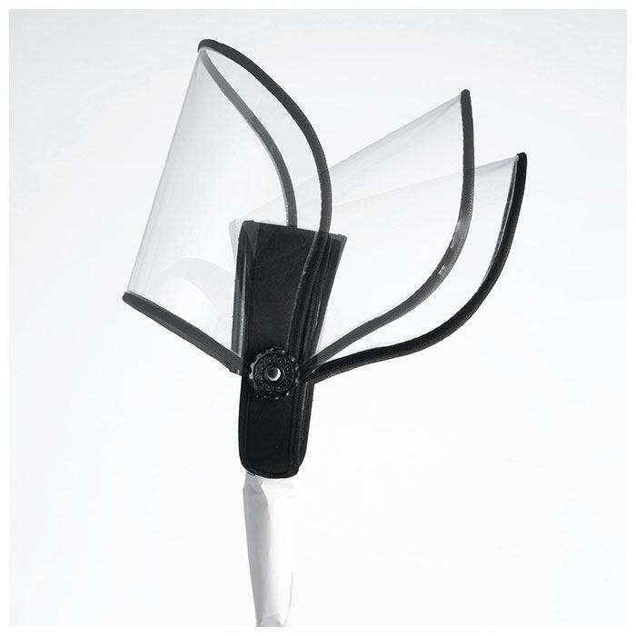 ・ワイドなつばで雨から顔をガードしてくれるレインバイザー。