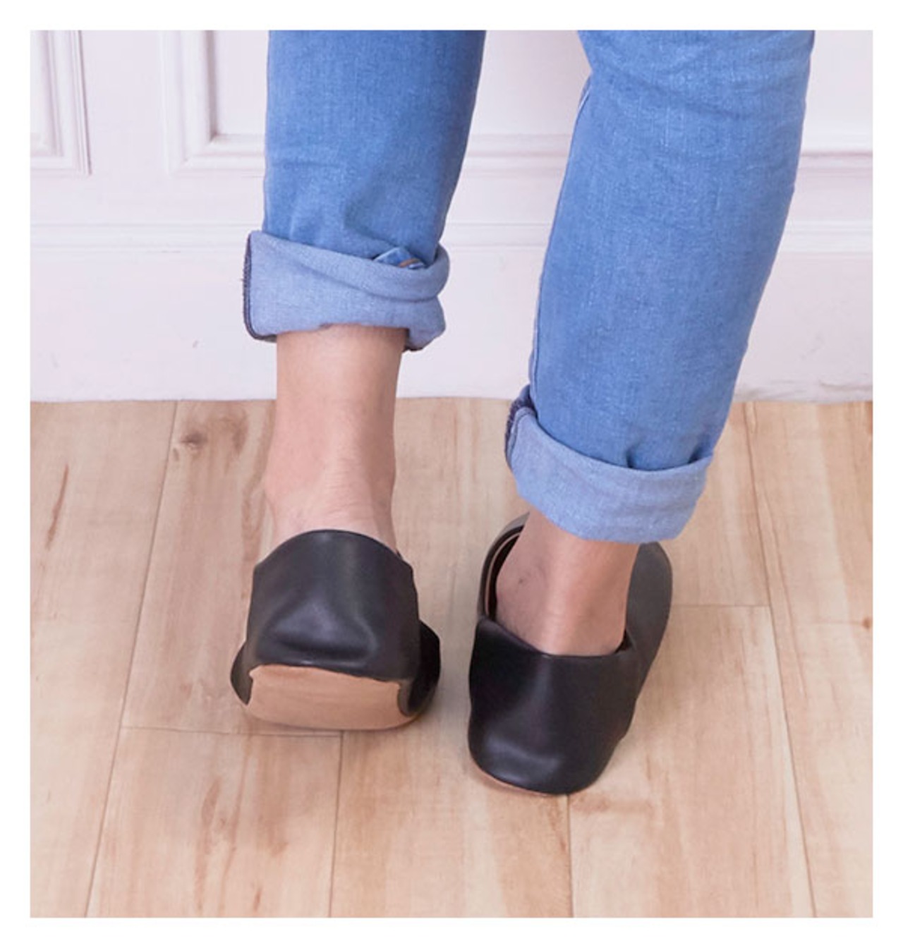 かかとを立てて使っても、踏んでも履けるスリッパです。シンプルなデザインのバブーシュスリッパで素材はPUレザーを使っています。ソールにクッション性があり疲れにくい。カラーも豊富です。